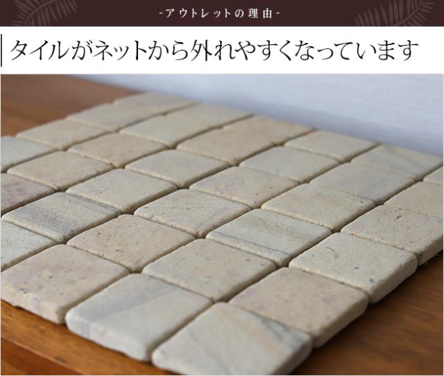 こちらの素材はパリナマンです。素材の性質上、タイルの下に敷いてあるネット状シートから外れてしまうためアウトレットとして販売しております。また、ストーンの模様のムラや欠けなどもございます。