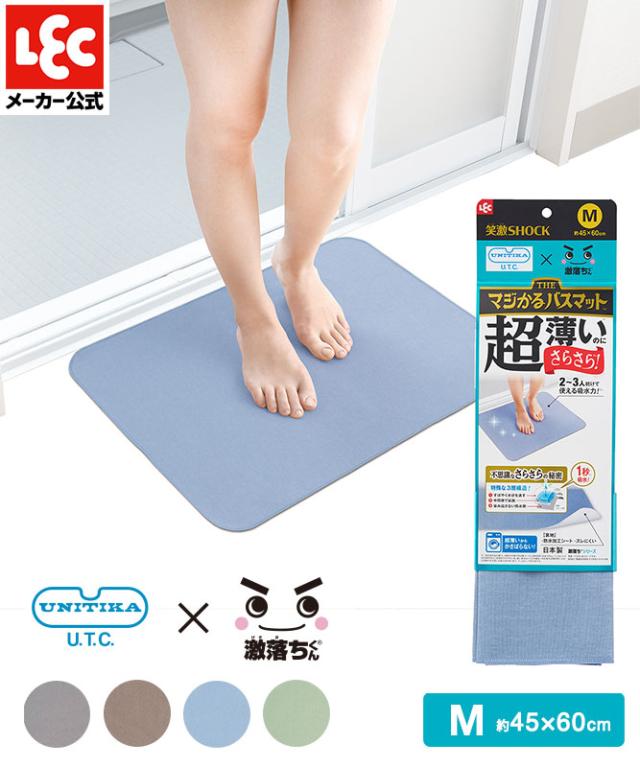 バスマット 笑激SHOCK マジカルバスマット お風呂マット 速乾 タオル地 風呂マット 足拭きマット 浴室マット 速乾バスマット タオル 滑り止め お風呂 マット 洗える ブルー Mサイズ レック lec