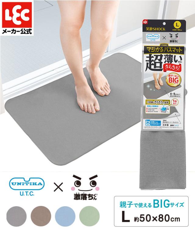 バスマット 笑激SHOCK マジカルバスマット お風呂マット 速乾 タオル地 風呂マット 足拭きマット 浴室マット 速乾バスマット タオル 滑り止め お風呂 マット 洗える グレー Lサイズ レック lec