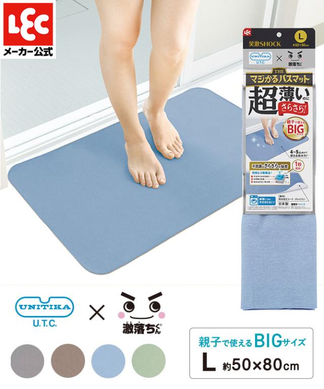 バスマット 笑激SHOCK マジカルバスマット お風呂マット 速乾 タオル地 風呂マット 足拭きマット 浴室マット 速乾バスマット タオル 滑り止め お風呂 マット 洗える ブルー Lサイズ レック lec