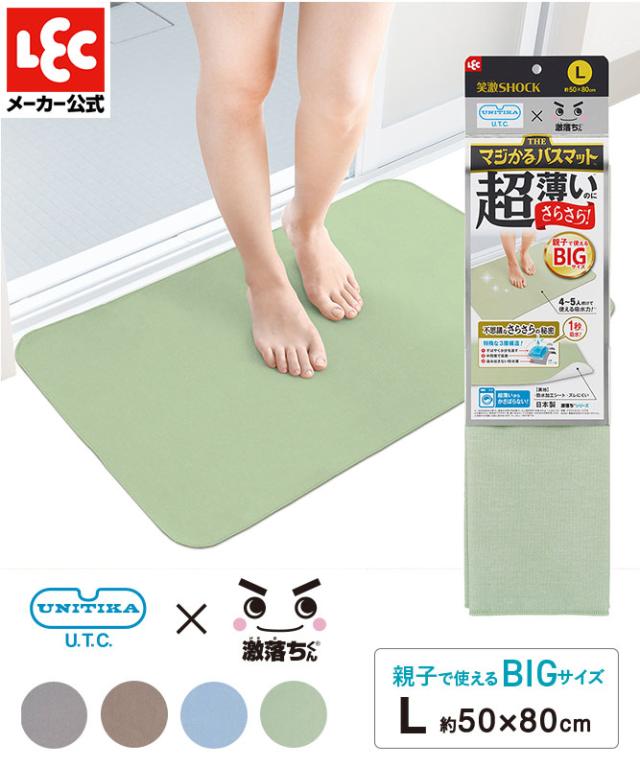 バスマット 笑激SHOCK マジカルバスマット お風呂マット 速乾 タオル地 風呂マット 足拭きマット 浴室マット 速乾バスマット タオル 滑り止め お風呂 マット 洗える グリーン Lサイズ レック lec