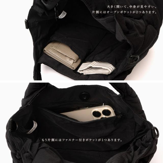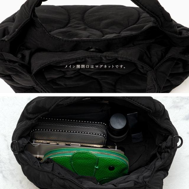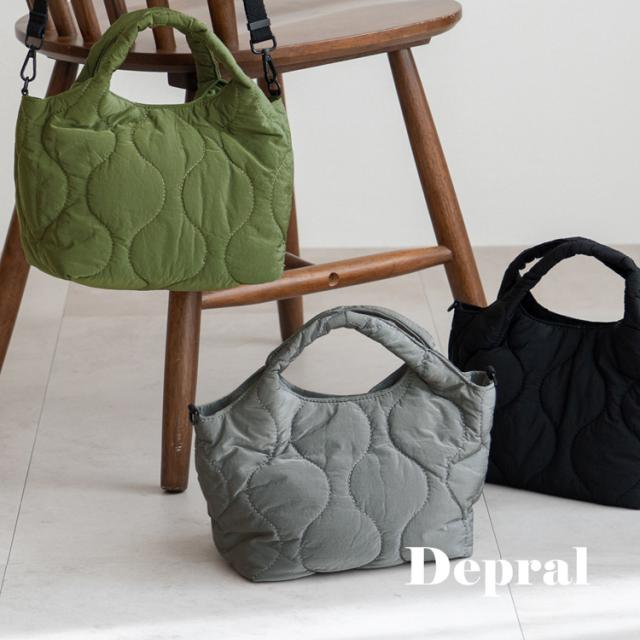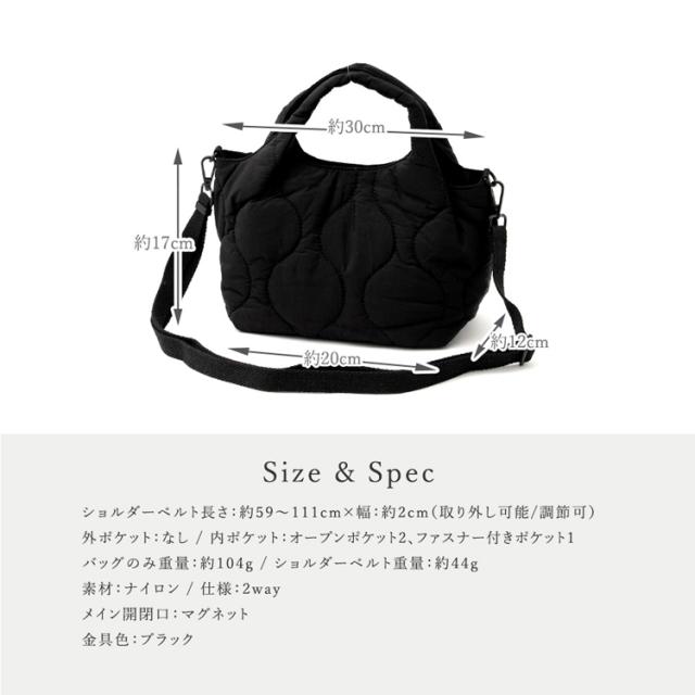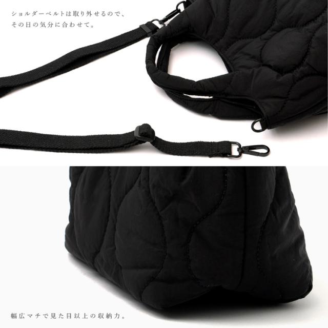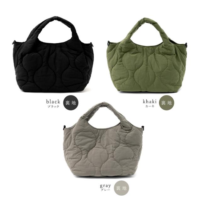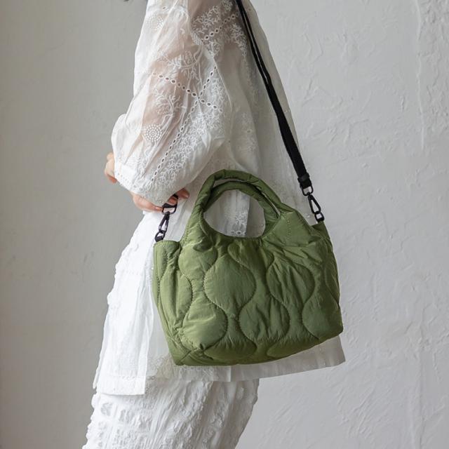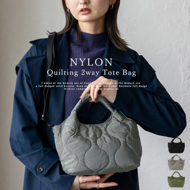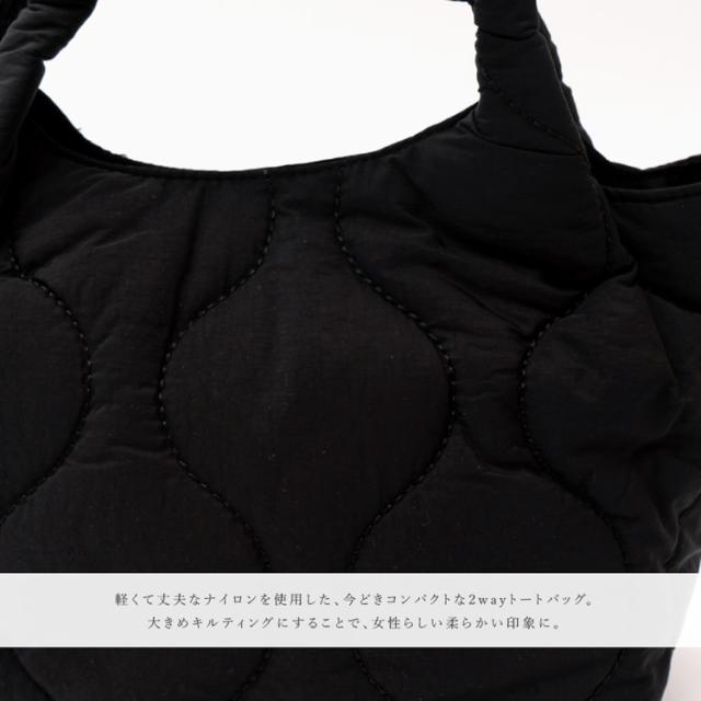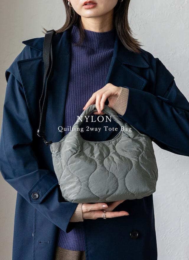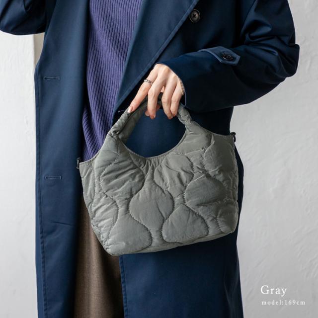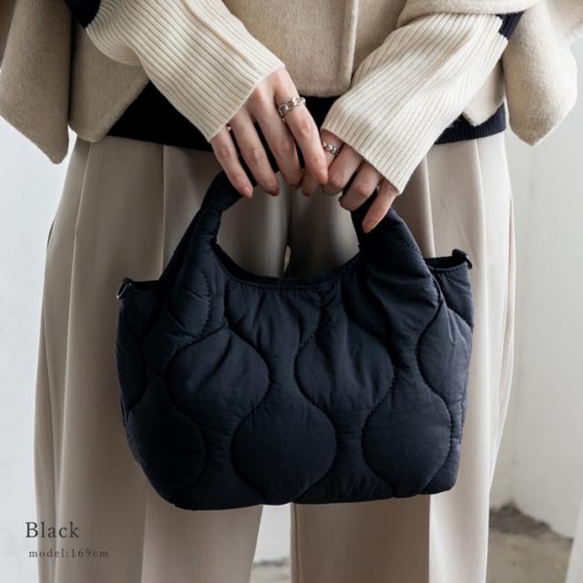 ふんわりキルティング素材の2wayミニトートバッグは、手持ちでもショルダーでも使える便利なデザイン。