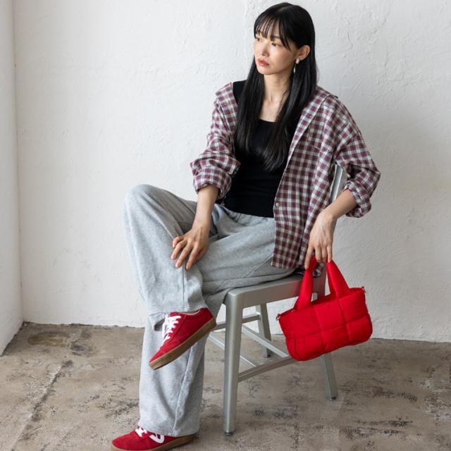見た目はすっきりとシンプルながら、メッシュナイロンの光沢感が大人っぽくカジュアルに映えるデザイン。