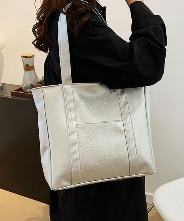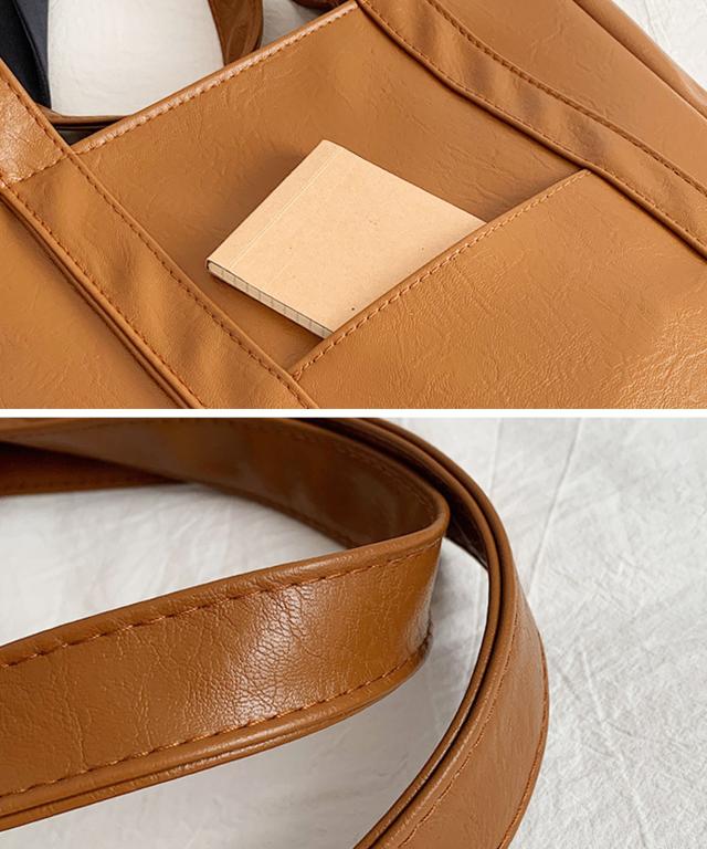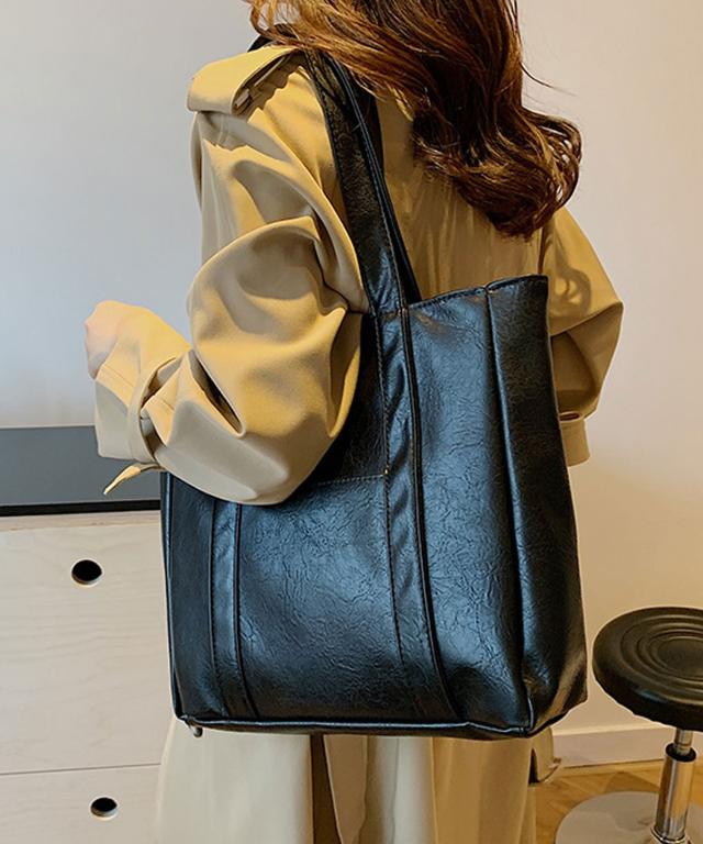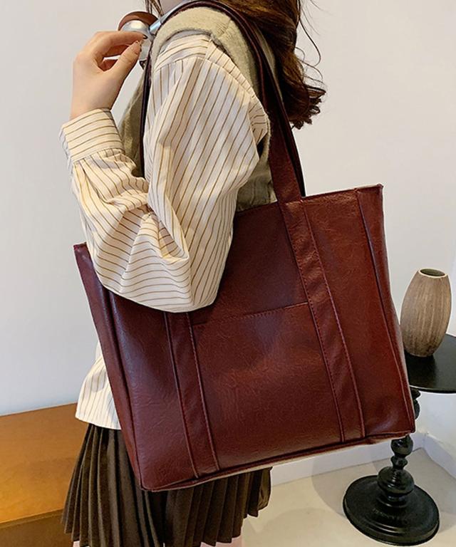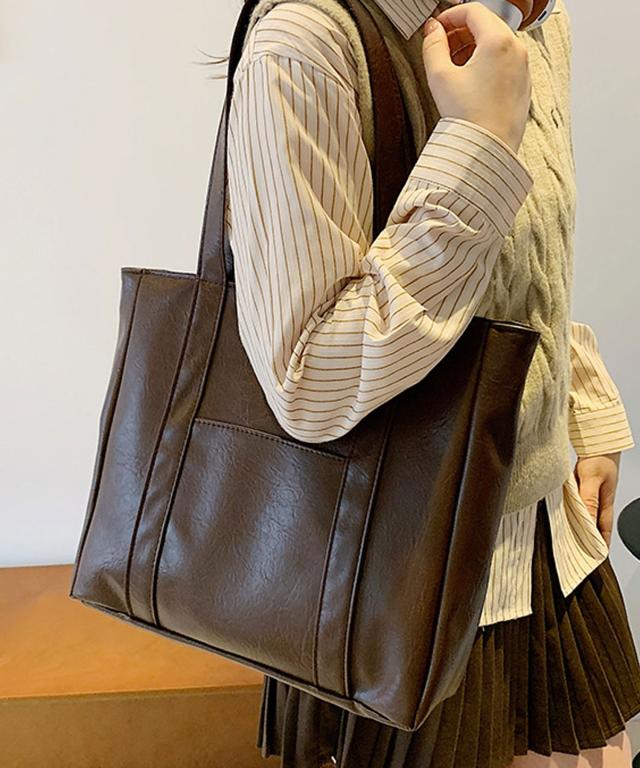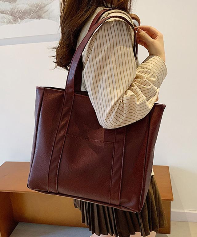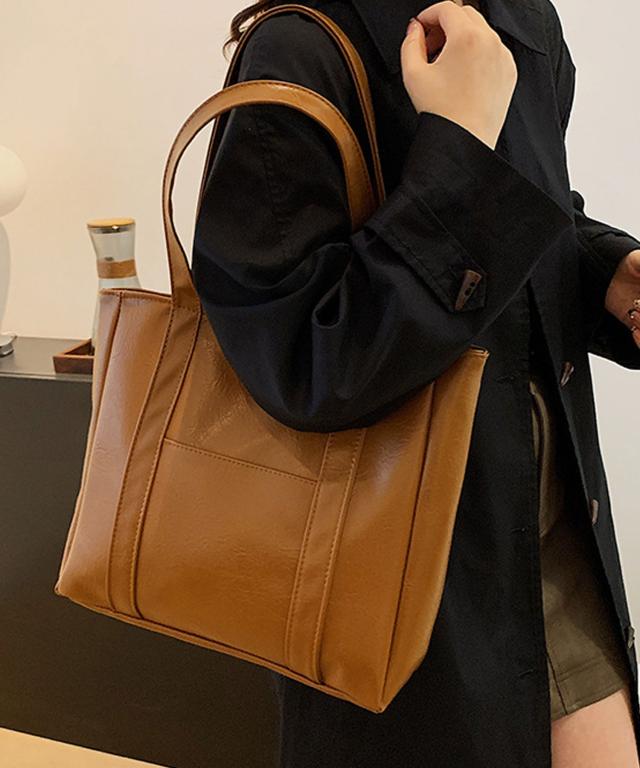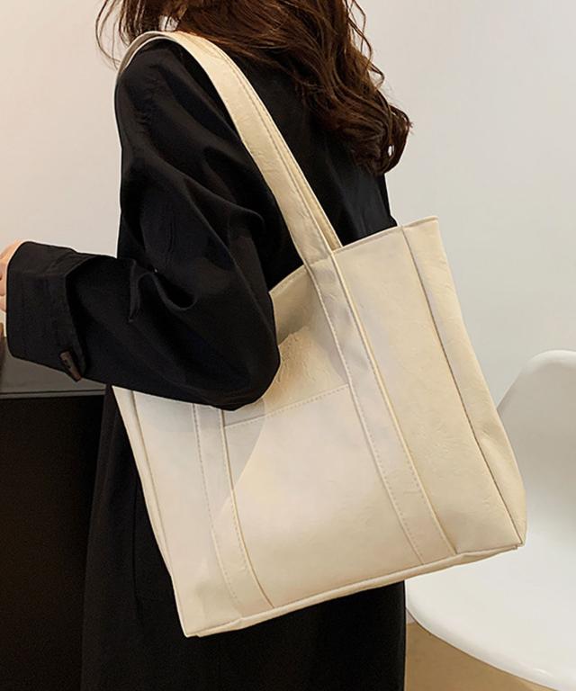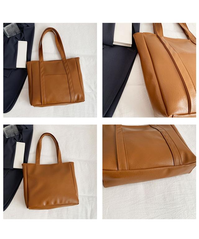 PUレザータッチプレーントートバッグ/サブバッグ/旅行カバン。