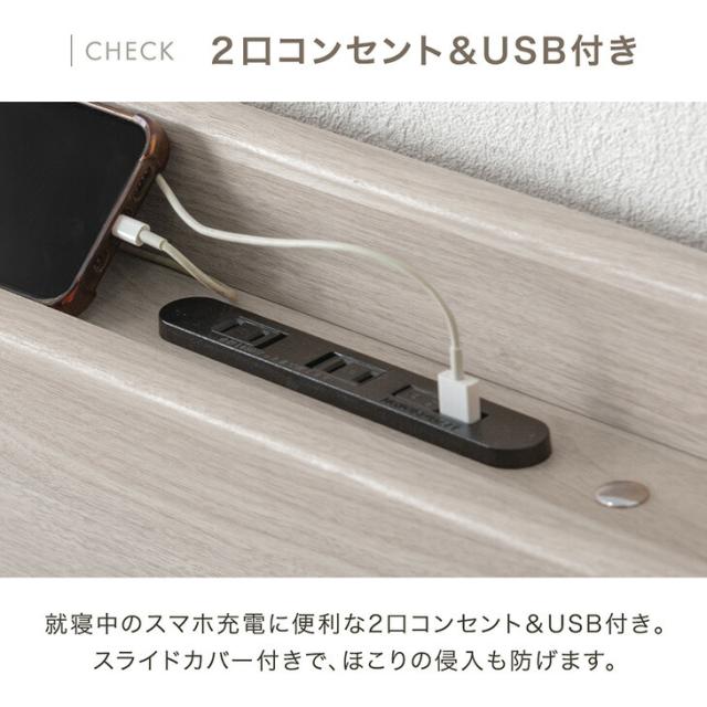 ・スマホスタンド&USB+2口コンセント付き宮棚