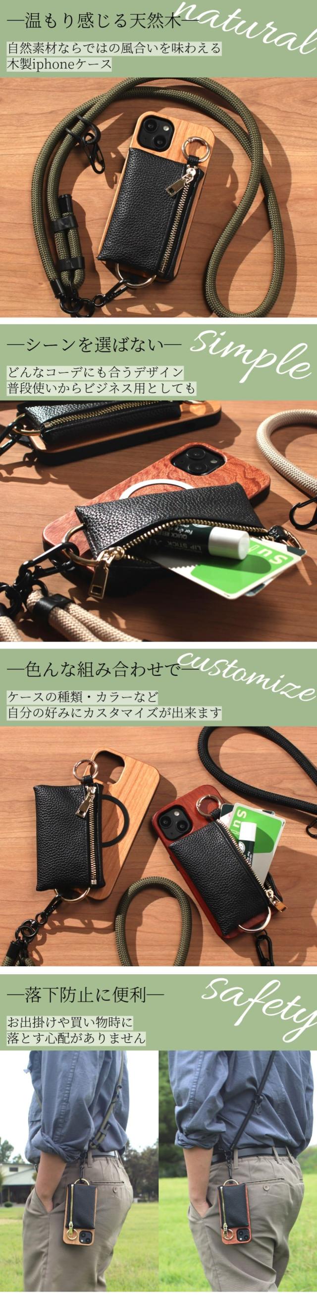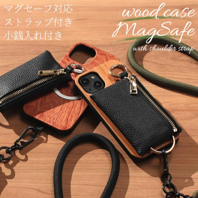iphone ケース 木製 小銭入れ付き iphone17 iphone16 iphone15 iphone14 pro 13 12 マグセーフ対応 magsafe ショルダー ストラップ アイフォン 17 16 15 14 SE マグネット magsafe対応 カード収納 財布 ウッド リング 17pro 13mini se3 ストラップ付き 落下防止 送料無料