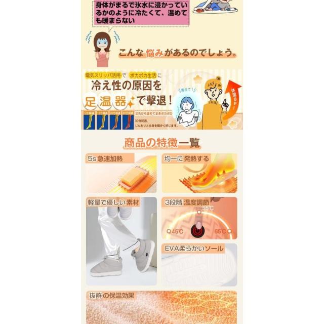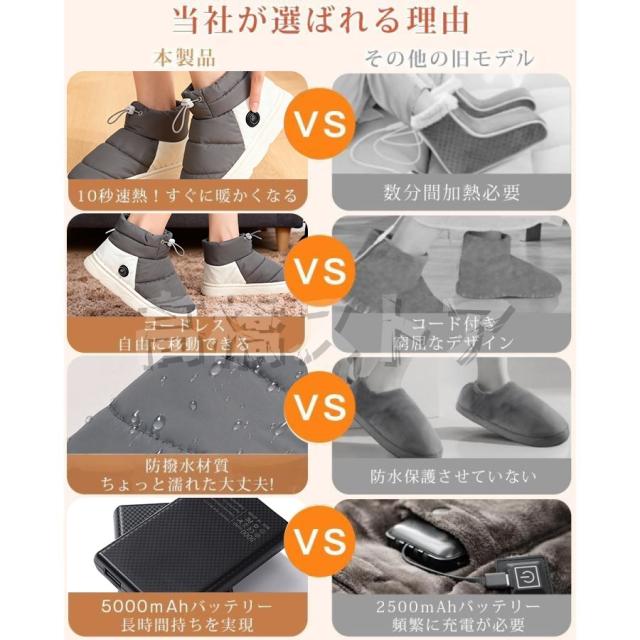 電気スリッパ フットウォーマー 電気 電熱スリッパ コードレス 足温器 歩ける スリッパ 電熱ブーツ おしゃれ 5000mAh電池 即暖 3段階調節 電気足温器 ヒーター