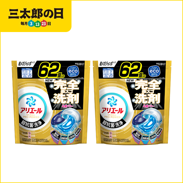 アリエール ジェルボールプロ パワー 洗濯洗剤 つめかえ 超メガジャンボ 62個×2個セット 大容量 詰め替え 洗剤