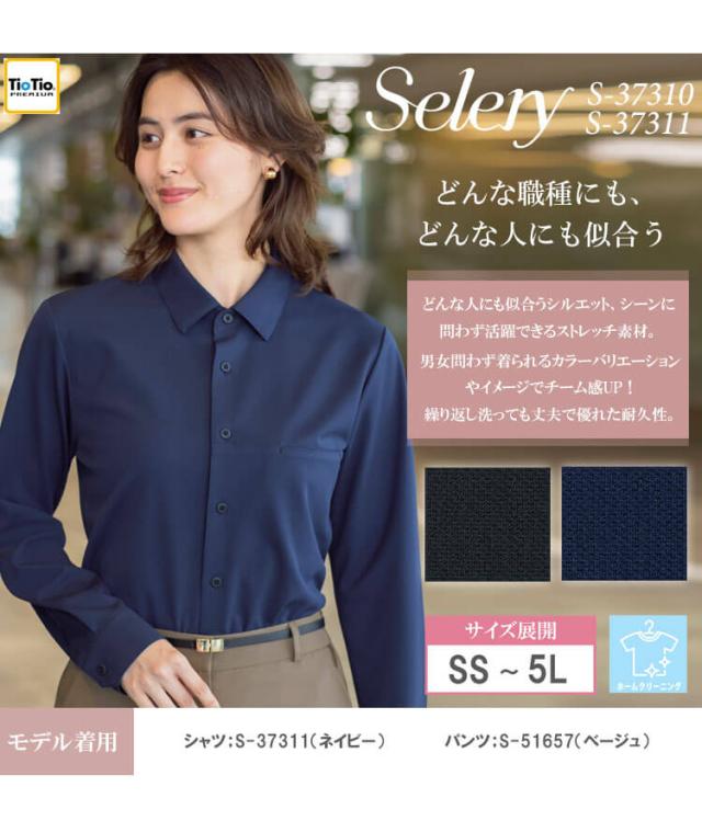 事務服 制服 オフィス セロリー selery ユニセックス 長袖シャツ S-37310 S-37311 2025年秋冬新作 ニュアス