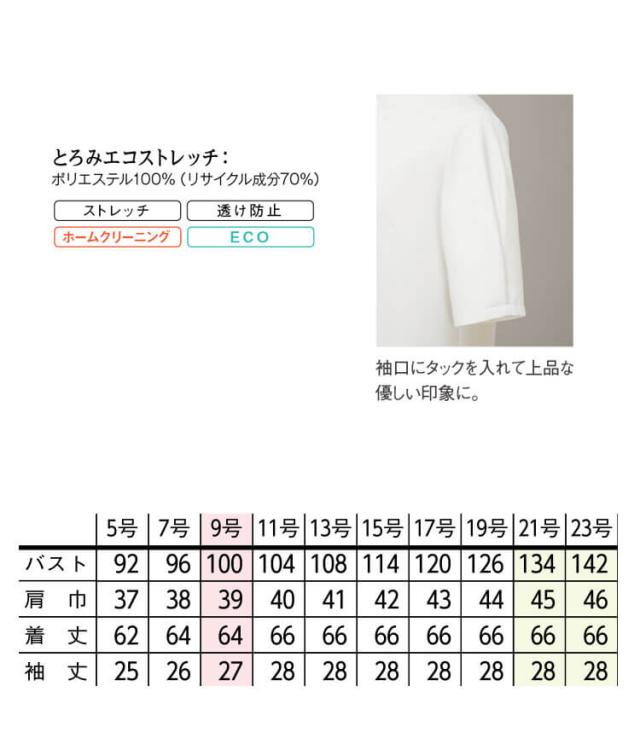 とろみエコストレッチ:ポリエステル100%(リサイクル成分70%)