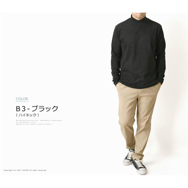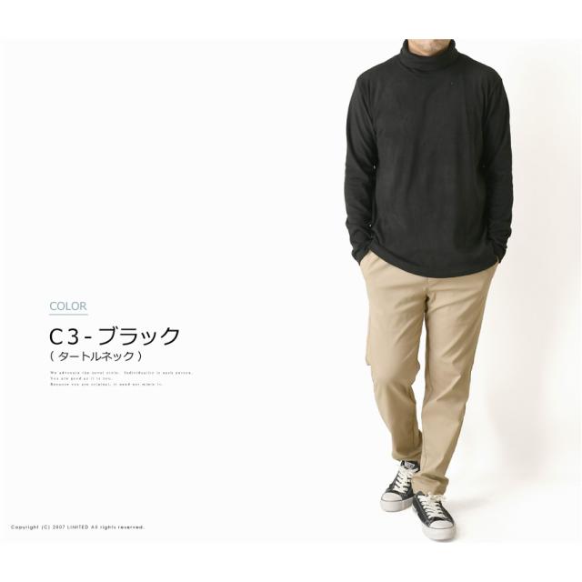 ストレッチ フリース カットソー メンズ インナー 薄手 クルーネック ハイネック タートルネック 伸縮 保温 秋 冬 あったか 防寒 【A1-1514】 送料無料 通販A3