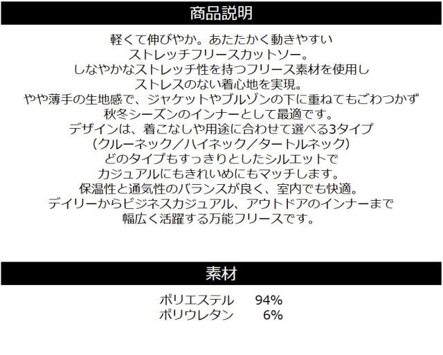 動きやすさと暖かさを両立した、ストレッチフリースカットソー M L LL 25aw