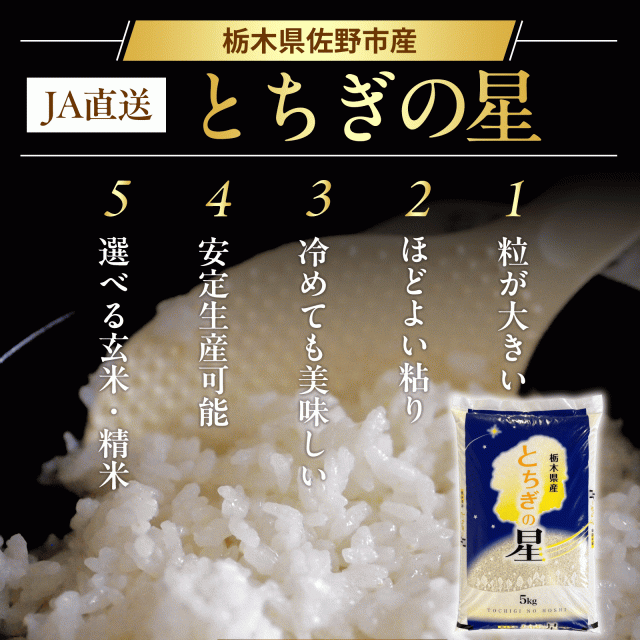 JA佐野 令和7年産 とちぎの星 栃木県産 米 こめ rice 精米 当日精米 5kg 5キロ 低温倉庫保管 栃木の星