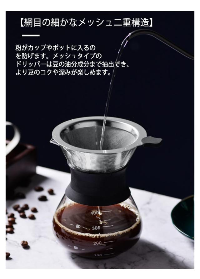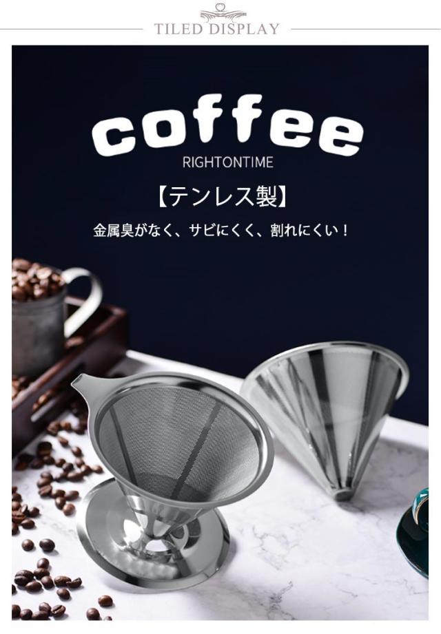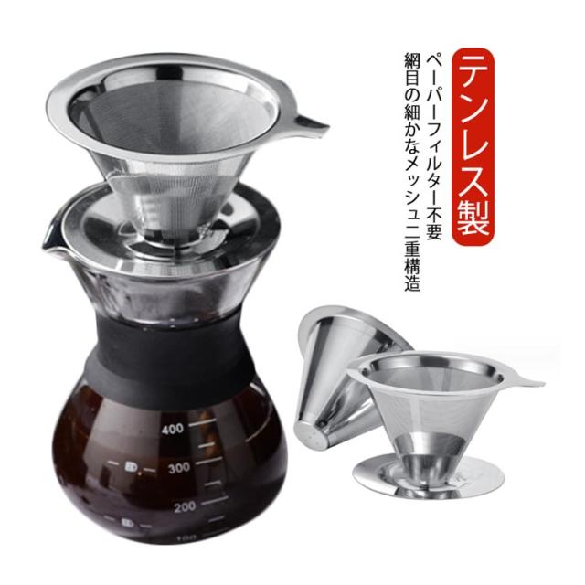 コーヒーフィルター おしゃれ ベース付き 2個セット コーヒードリッパー ペーパーレス 道具 ステンレスフィルター くり返し使える おしゃれ ハンドドリップ メッシュ二重構造フィルター ドリッパー フィルター不要 ステンレス製
