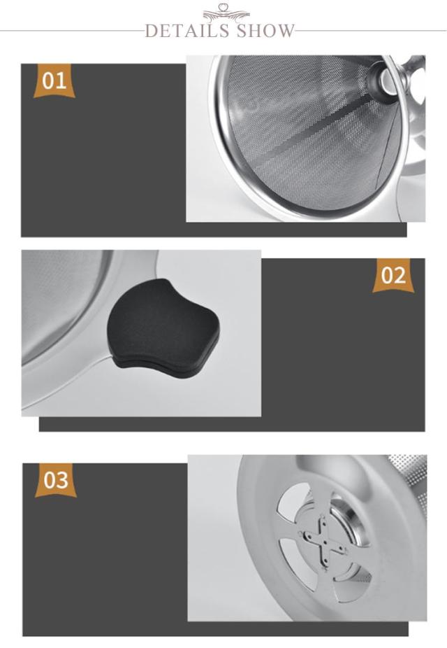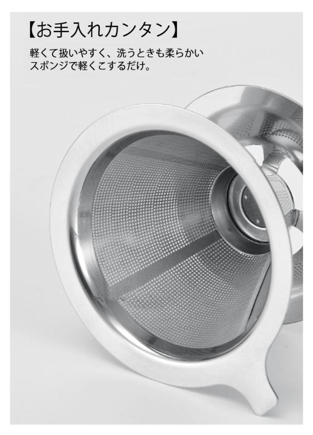 | 【テンレス製】金属臭がなく、サビにくく、割れにくい! 【ペーパーフィルター不要】くり返し使えて、ゴミが減りエコで経済的。 【網目の細かなメッシュ二重構造】粉がカップやポットに入るのを防げます。メッシュタイプのドリッパーは豆の油分成分まで抽出でき、より豆のコクや深みが楽しめます。 【お手入れカンタン】軽くて扱いやすく、洗うときも柔らかいスポンジで軽くこするだけ。 | |