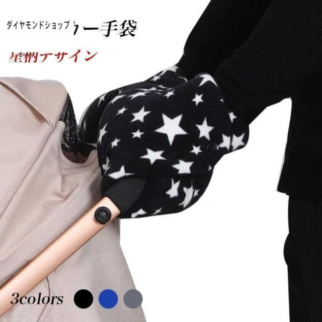 ベビーカー手袋 フリース 冬 ハンドルカバー ベビーカー ベビーカー用手袋 カート 手袋 ウォームマフ ハンドウォーマー あったか 星柄 フリース手袋 防寒 防風 冬手袋 ボア ポーラーフリース 暖かい グローブ グレー ブルー ブラック