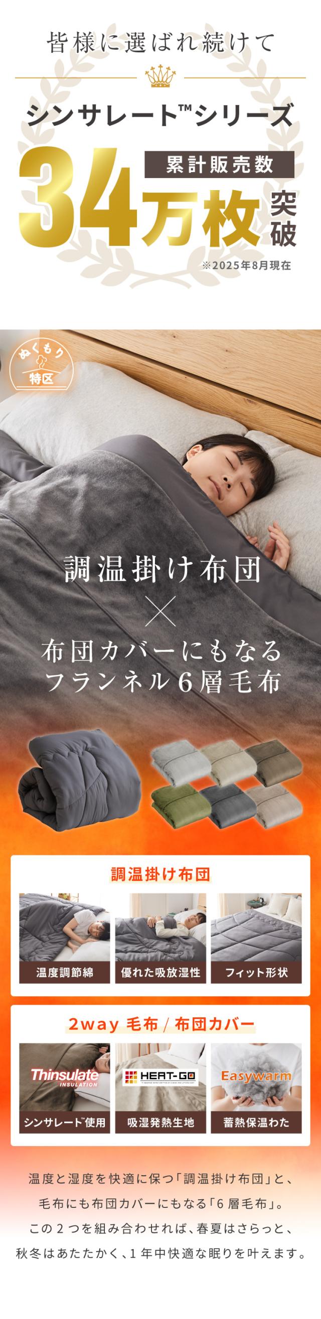 6層毛布 調温掛け布団 セット ぬくもり特区 シングル 温度調整 布団カバーにもなる毛布 シンサレート 抗菌 防臭 防ダニ 調温 圧縮梱包 低ホルム【送料無料】