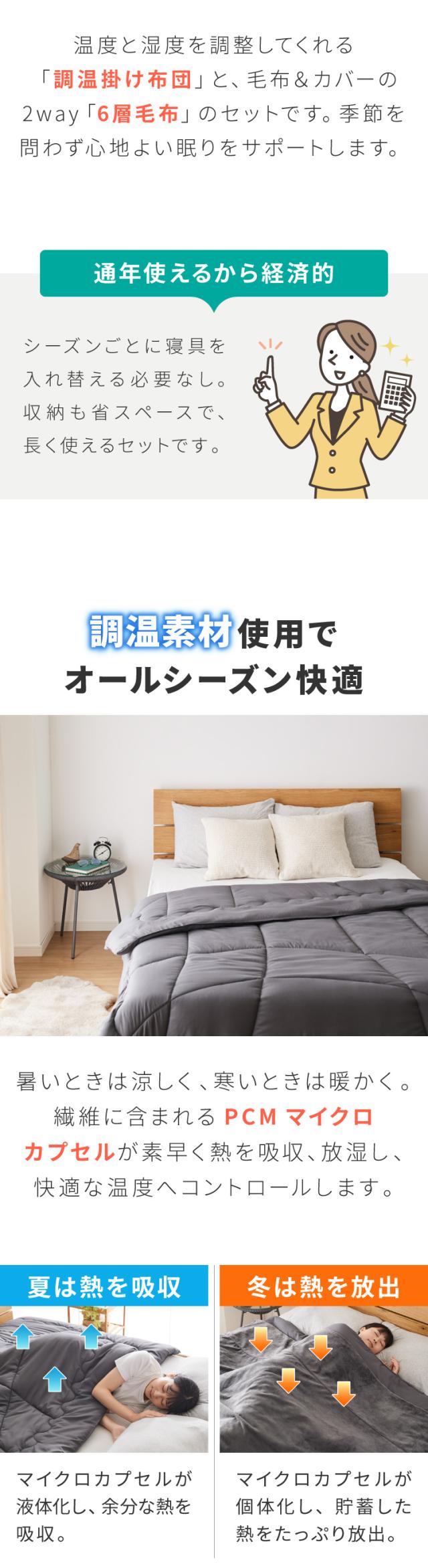 6層毛布 調温掛け布団 セット ぬくもり特区 ダブル 温度調整 布団カバーにもなる毛布 シンサレート 抗菌 防臭 防ダニ 調温 圧縮梱包 低ホルム【送料無料】