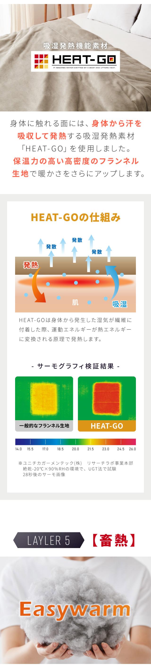 1層目には吸湿発熱機能を備えたHEAT-GOフランネル生地。
