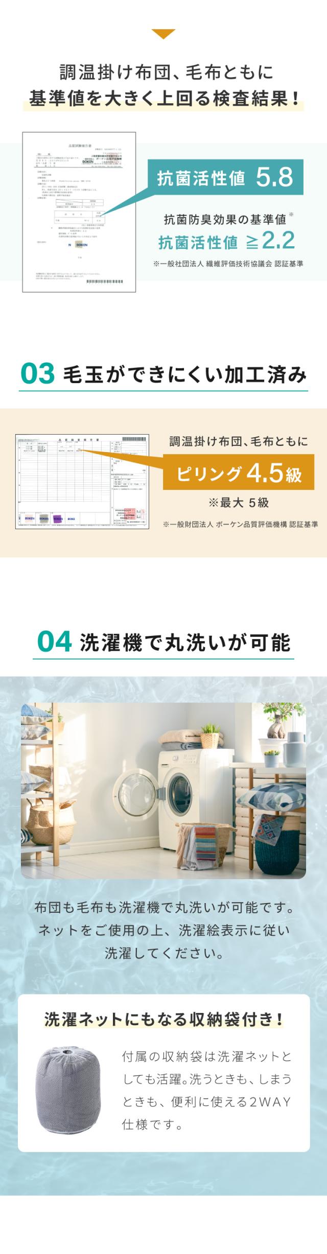 抗菌・防臭・防ダニ加工、丸洗いOKでいつでも清潔にご使用いただけます。