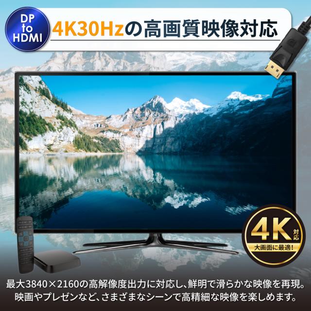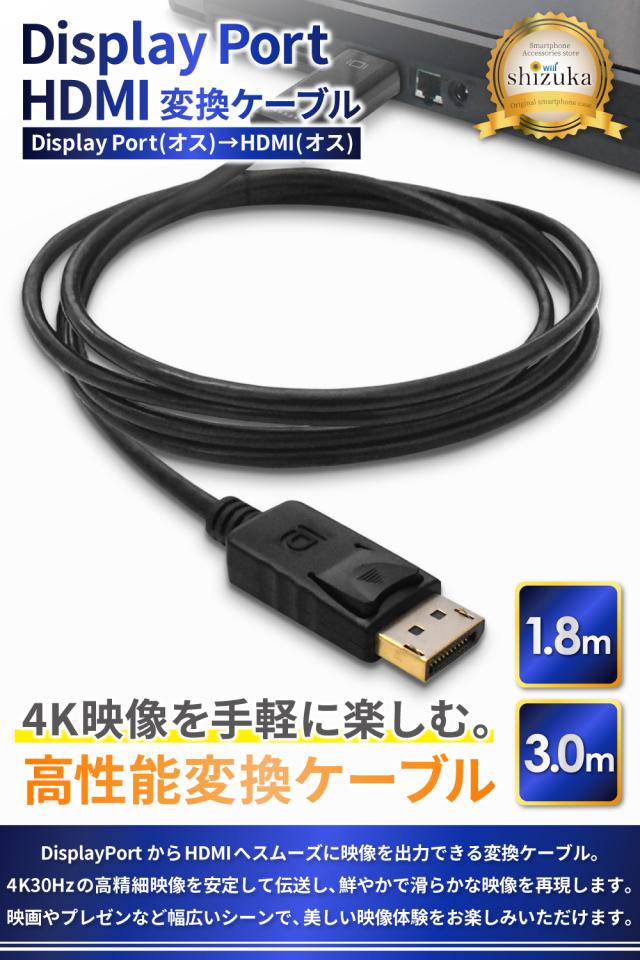 DisplayPort to HDMI 変換ケーブル HDMI変換 DP ディスプレイポート ケーブル HDMI 高画質 hdmiケーブル Windows Mac パソコン ノートPC 軽量 テレビ 接続 モニター ミラーリング リモートワーク 4K 軽量 小型 コンパクト シズカウィル