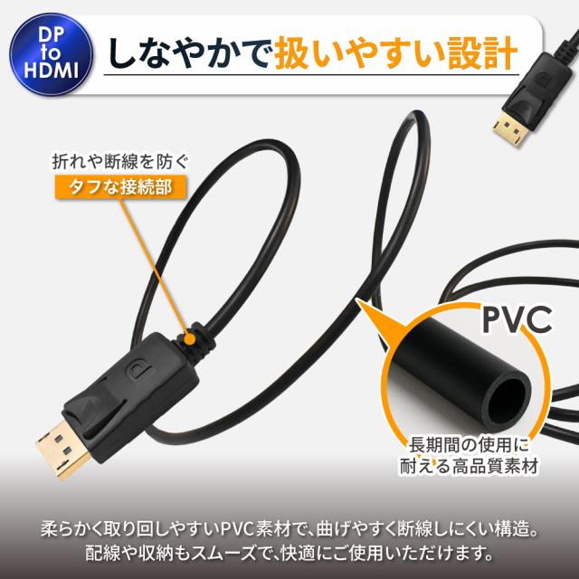 変換ケーブル ケーブル 変換器 DisplayPort HDMI hdmi DP ディスプレイポート テレビ 接続 ノートパソコン PC Apple MacBook Mac windows TV モニター ディスプレイ ゲーミングモニター TV プロジェクター 取り付け簡単 差し込むだけ 薄型 軽量 コンパクト デザイン 持ち運び 動画 映像 コード 投影 出力ケーブル ミラーリング データ転送 在宅ワーク テレワーク zoom 遠隔授業 テレビ会議 リモートワーク 大画面 オンライン飲み会 リモート授業 おしゃれ オシャレ