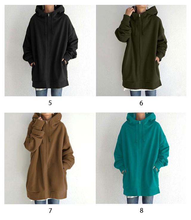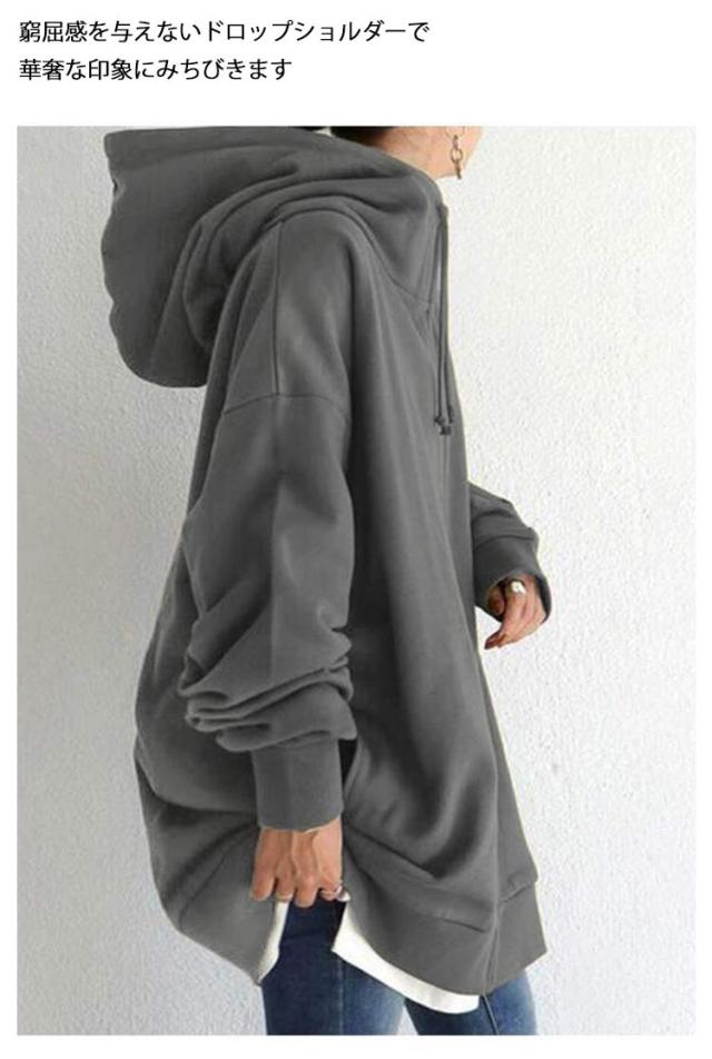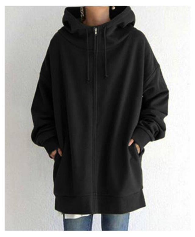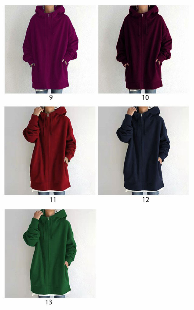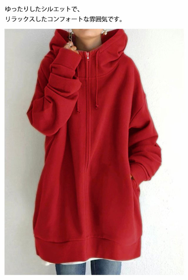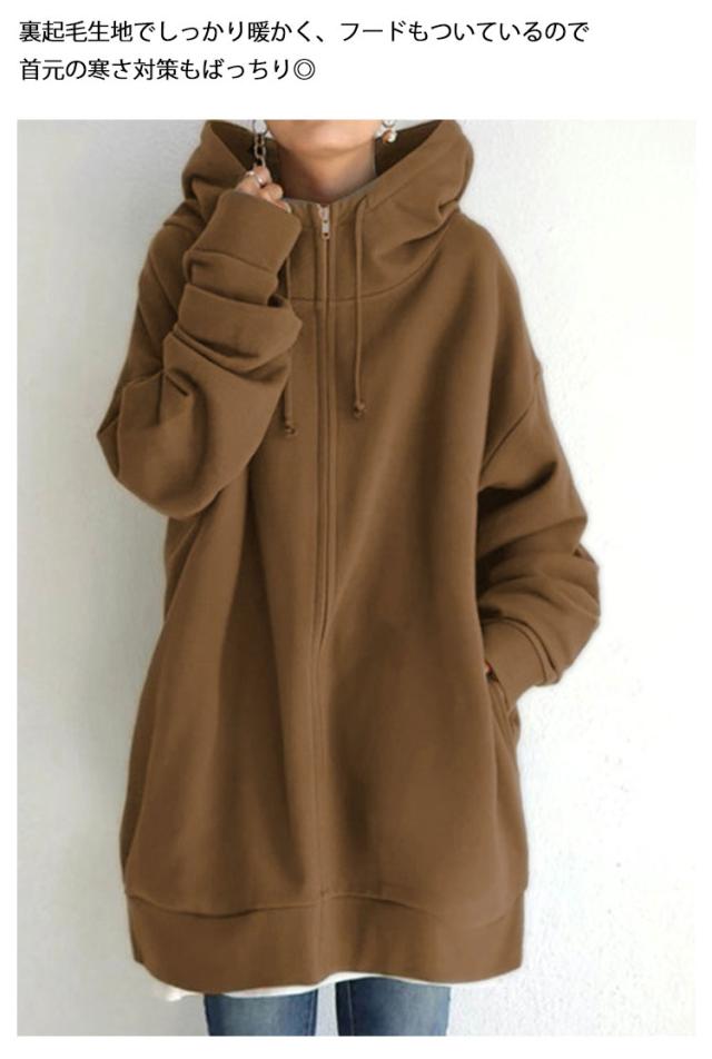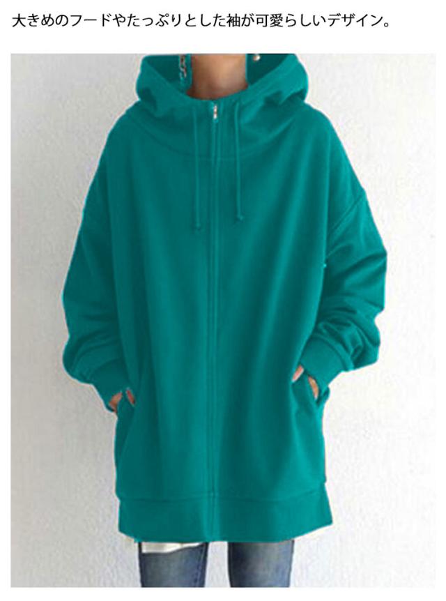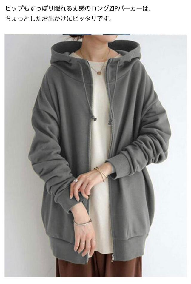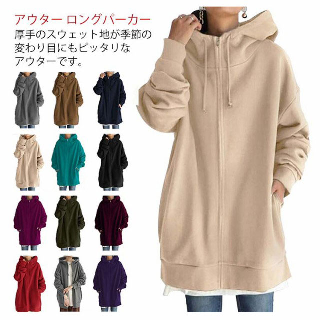 S?5XLサイズ!パーカー レディース ロングパーカー ジップアップパーカー ロング丈 ボリュームカラー フード付き アウター コート ロングコート 大きサイズ 裏起毛 暖かい 春 秋 冬 体型カバー 無地 送料無料