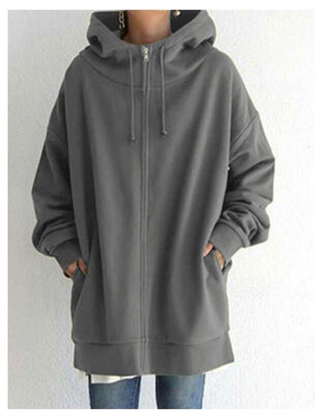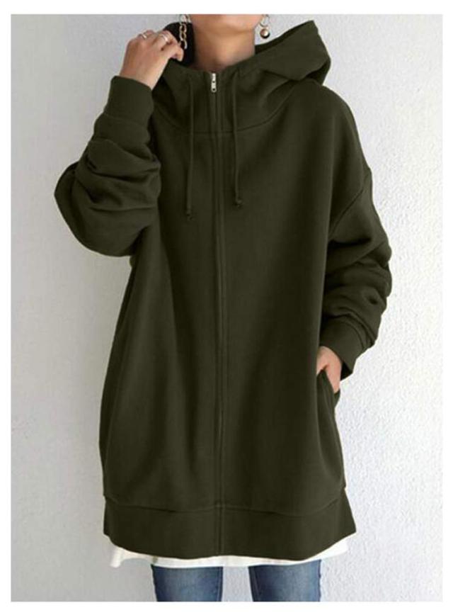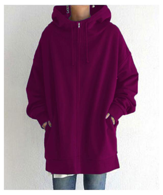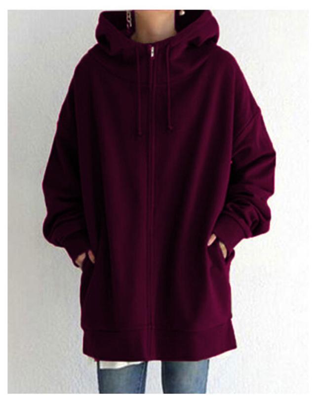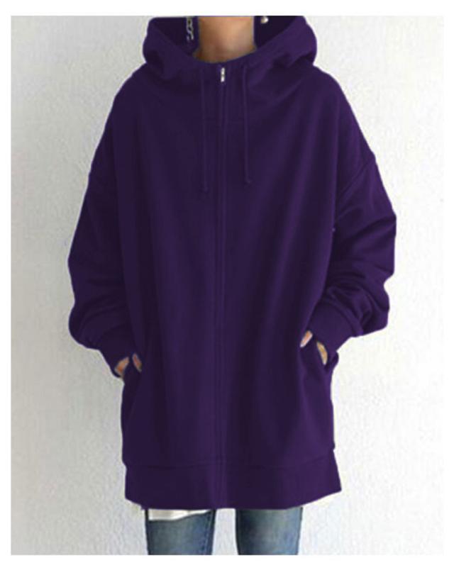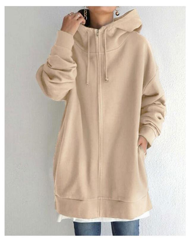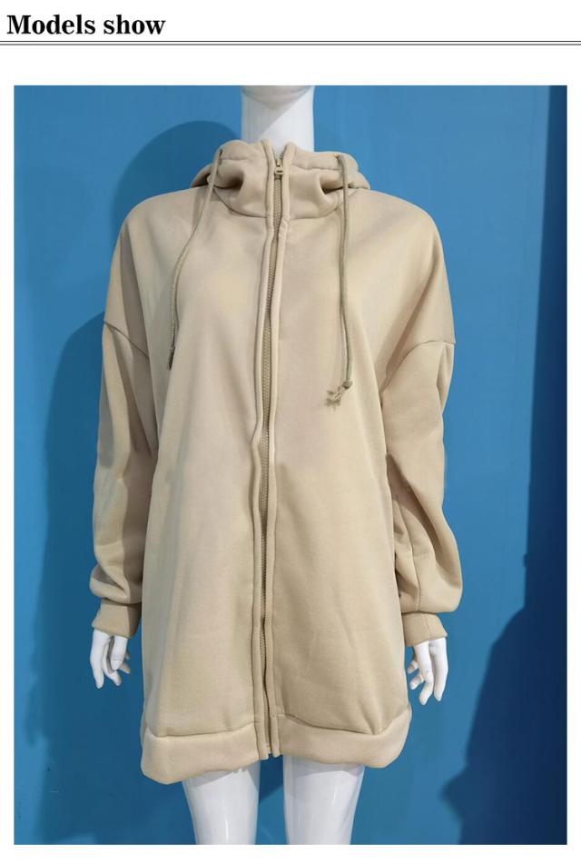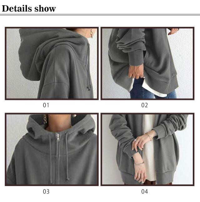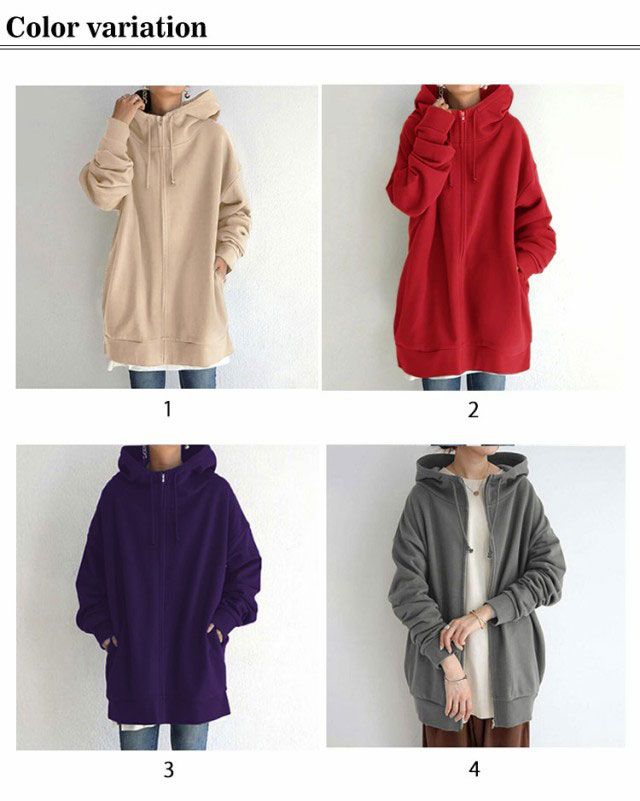 S?5XLサイズ!パーカー レディース ロングパーカー ジップアップパーカー ロング丈 ボリュームカラー フード付き アウター コート ロングコート 大きサイズ 裏起毛 暖かい 春 秋 冬 体型カバー 無地 送料無料