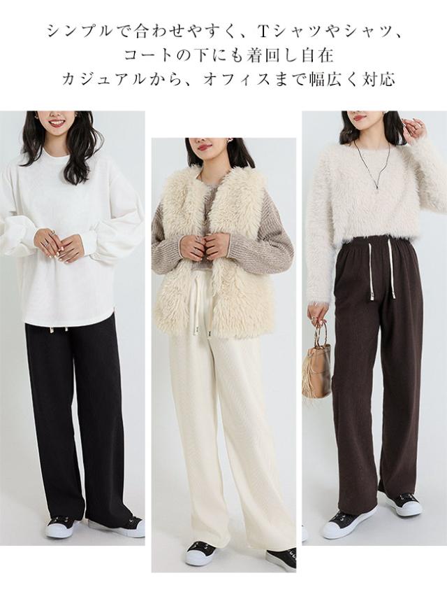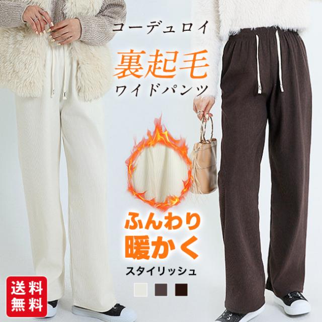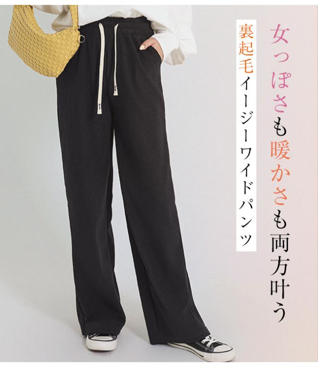 【Pontaパス会員は21%ポイントバック!】裏起毛 パンツ レディース 秋冬 ワイドパンツ あったか ストレッチ ズボン 美脚 ゆったり スウェット 通勤 部屋着 きれいめ 防寒 厚手 体型カバー イージーパンツ 高身長 低身長 黒 白