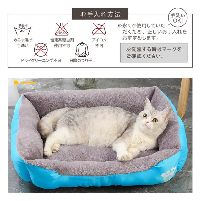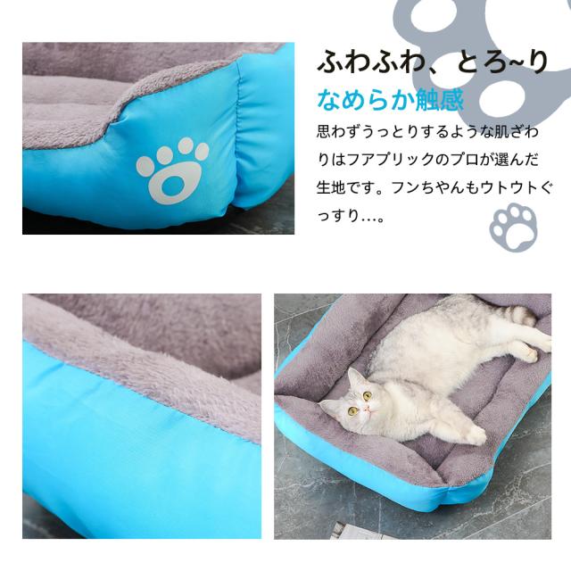 サイズ(長さ*幅):40cm*50cm カラー:ブルー、ブラック 、グレー 【表面耐スクラッチ設計】製品の外の生地は傷に強い生地を採用し、ペットを存分に眠らせます.【軽くて柔らかい】ペットに最高品質の睡眠を与えるために、最も快適なコットン素材を使用しています。 ソファに近い最高級の生地は、ペットに嫌悪感を与えることはありません。【洗濯】洗濯に関しては、全体の形状を考慮しておらず、中綿を使用しています。 汚れた箇所は、アルコールティッシュなどペットに優しい方法で拭いていただくことをおすすめします。