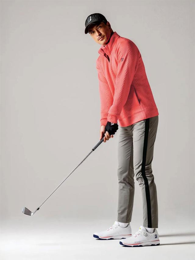 ストレッチ性も高く立ち座りの多いゴルフの動きにも対応します。