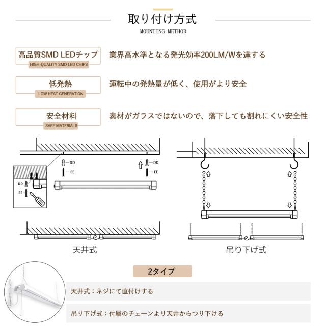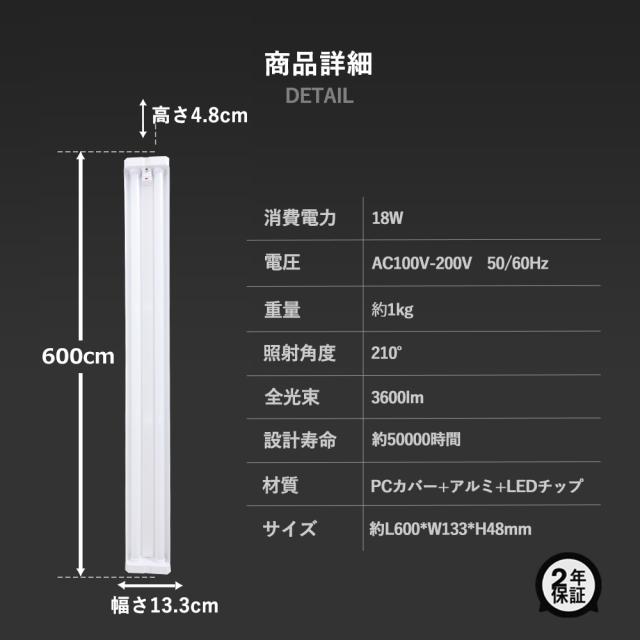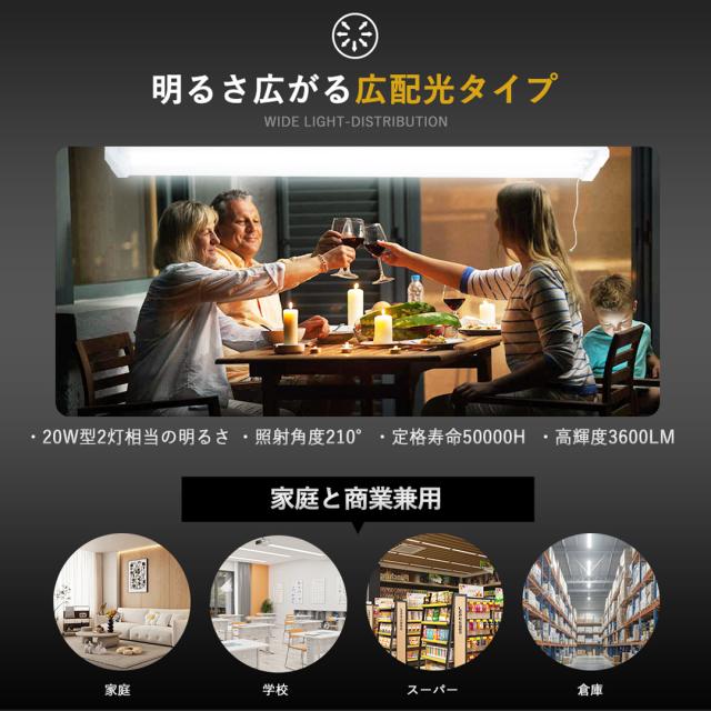 - 本製品は20W形2灯相当の明るさを備えており、高輝度で十分な照明を提供できます。広い空間や明るさを求める場所にも適しており、効果的な照明を実現します。