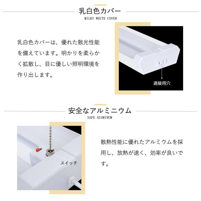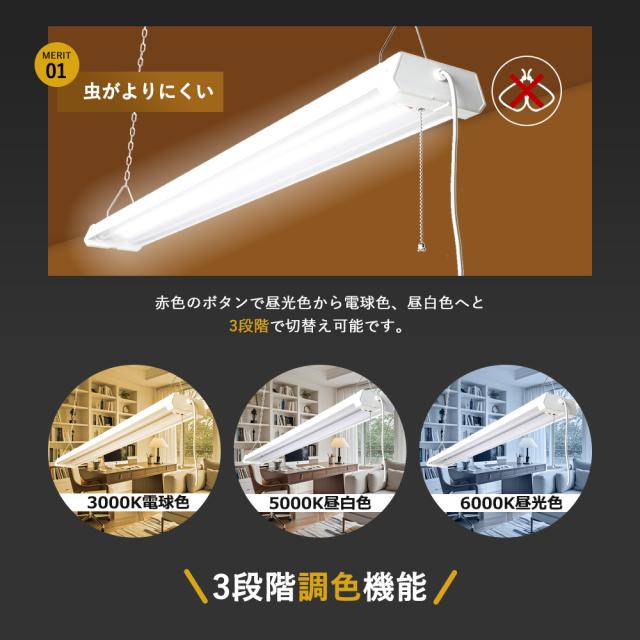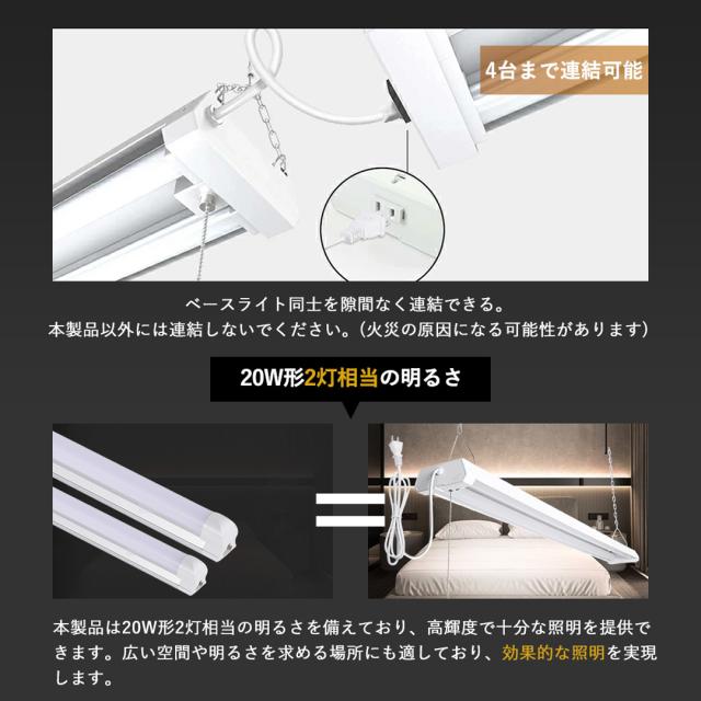 蛍光灯 コンセント式 led ベースライト プルスイッチ LED蛍光灯 20W形 2灯相当 三段調色可能 配線不要 照明 器具一体型 吊り下げ照明 キッチンライト LEDベースライト 天井直付 照明器具 シーリングライト LED 配線不要 照明 防虫 PSE認証 二年保証 消費電力18W 3600lm