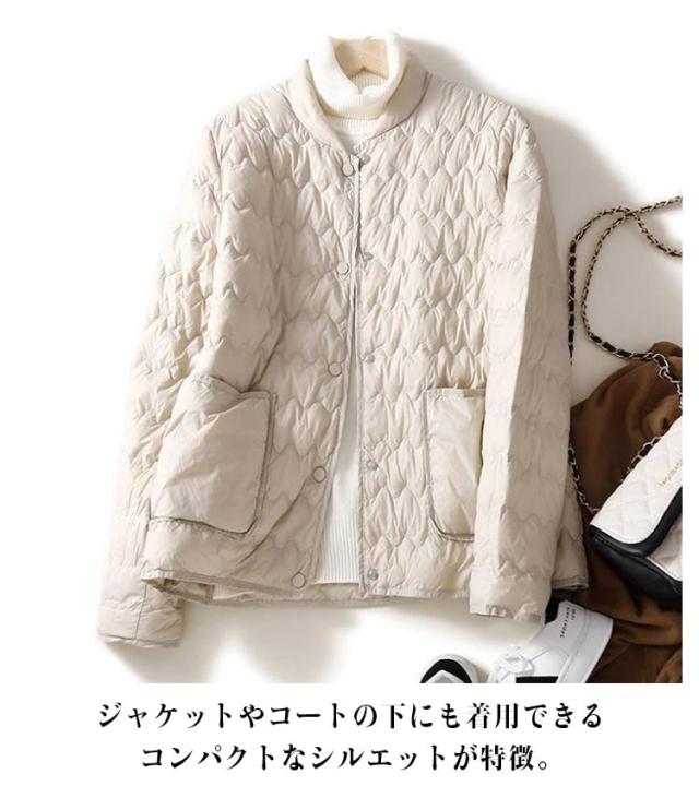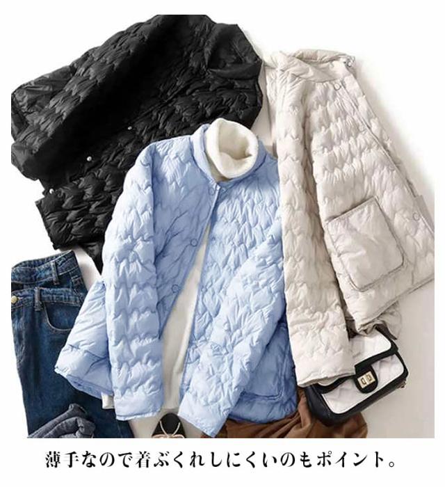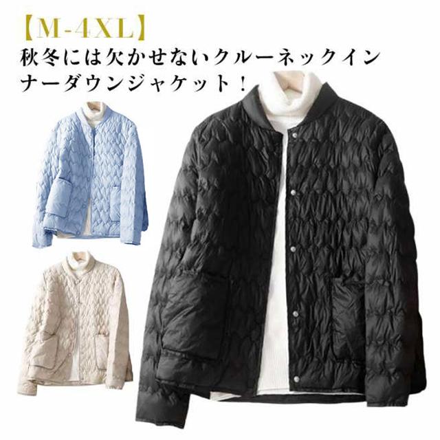 中綿 ジャケット レディース インナーダウンジャケット クルーネック インナーダウン ライトダウン ファイバーダウン ジャケット 軽量 薄手 防寒 保温 あたっか 長袖 コートイン インナー ダウン ジャケット 春 秋 冬 アウター 大きいサイズ