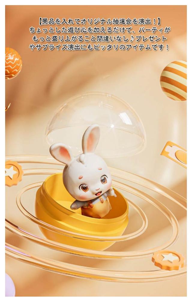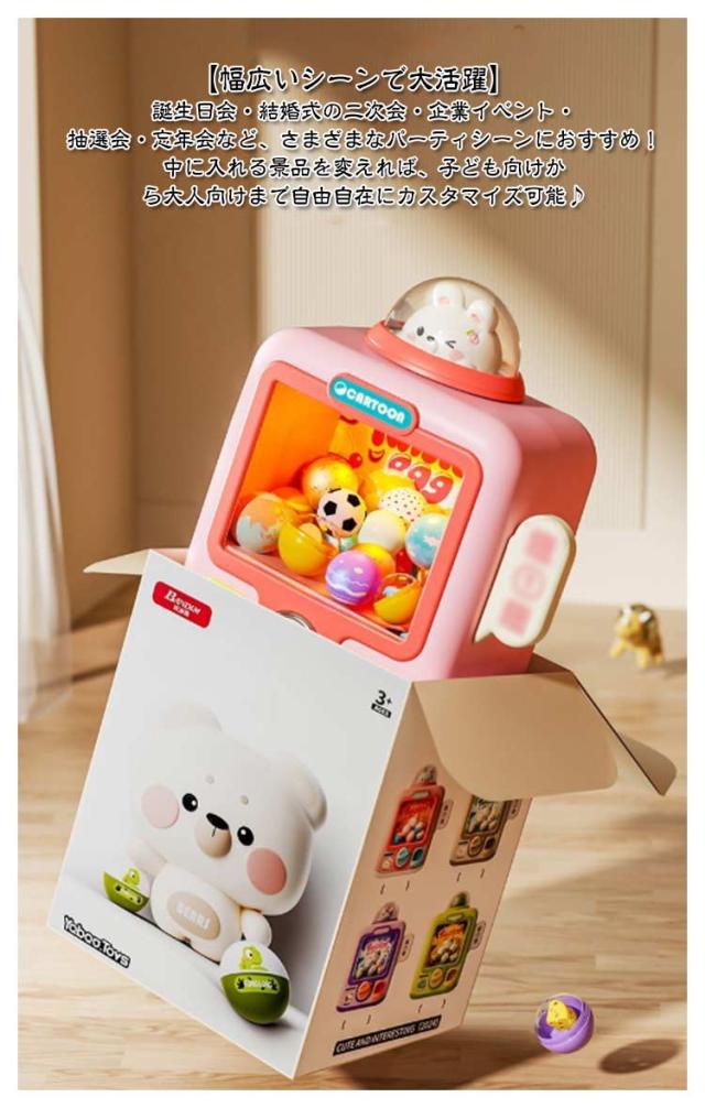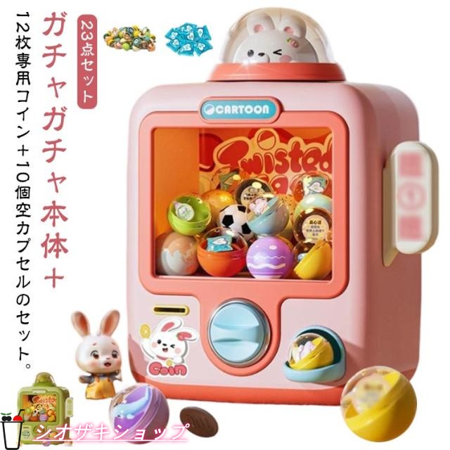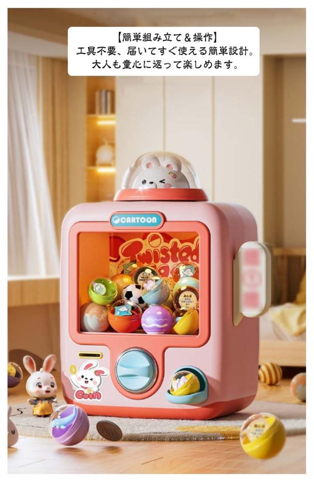 | ガチャガチャ本体+12枚専用コイン+10個空カプセルのセット。【23点セット】 【本格仕様】回すと「カチッ」とカプセルが落ちると音が鳴り、LEDライトがピカッと光る!まるで本物のガチャマシンみたいな演出で気分もUP♪ 【すぐに遊べるセット内容】・カプセル6個(中身は空の状態です。お好きな景品を入れてください)・専用コイン6枚付き(繰り返し使えるので経済的!) 【幅広いシーンで大活躍】誕生日会・結婚式の二次会・企業イベント・抽選会・忘年会など、さまざまなパーティシーンにおすすめ!中に入れる景品を変えれば、子ども向けから大人向けまで自由自在にカスタマイズ可能♪ 【簡単組み立て&操作】工具不要、届いてすぐ使える簡単設計。大人も童心に返って楽しめます。 【景品を入れてオリジナル抽選会を演出!】ちょっとした遊び心を加えるだけで、パーティがもっと盛り上がること間違いなし♪プレゼントやサプライズ演出にもピッタリのアイテムです! | |