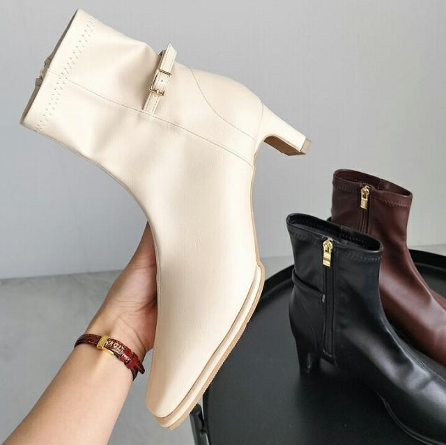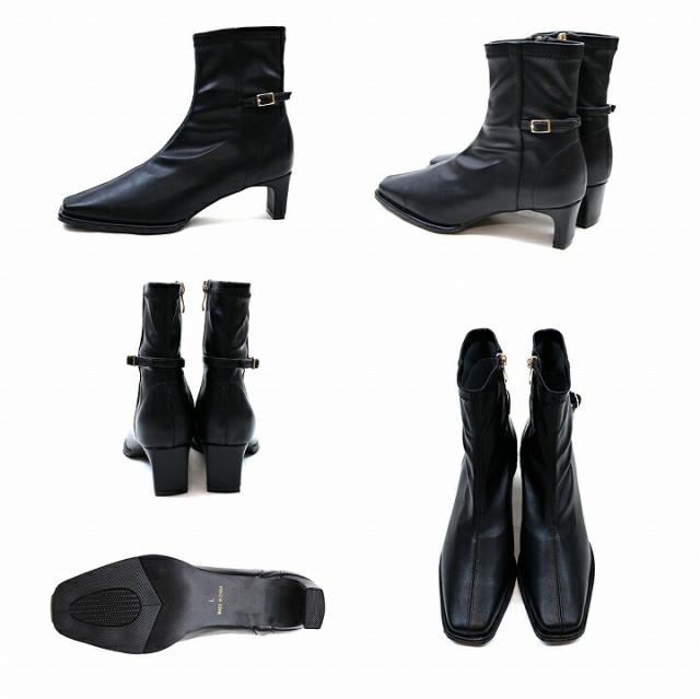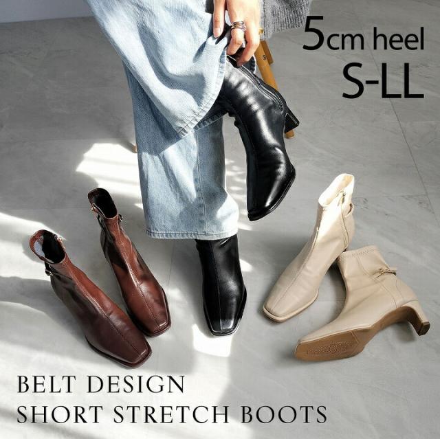 ピース付きベルトデザインストレッチショートブーツ