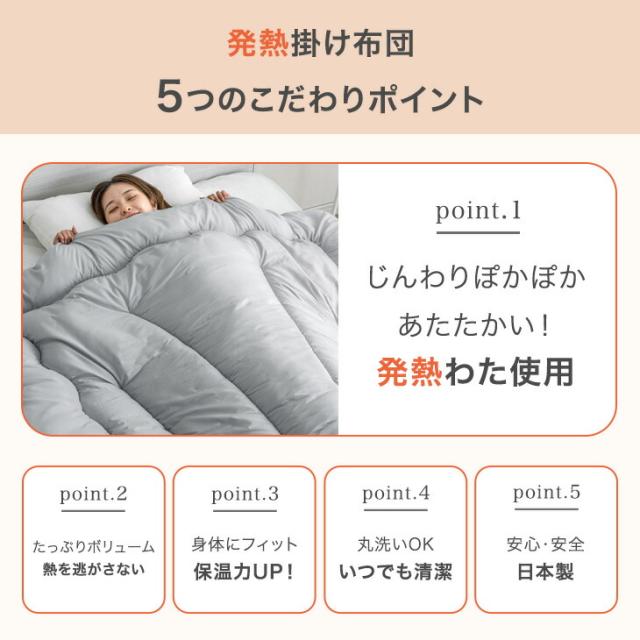 発熱 掛布団 丸洗い可能 掛け布団 掛けふとん 掛けぶとん 掛ぶとん あったか布団 軽い 暖かい かけ布団 国産 日本 ダブル 秋 冬用 グレー