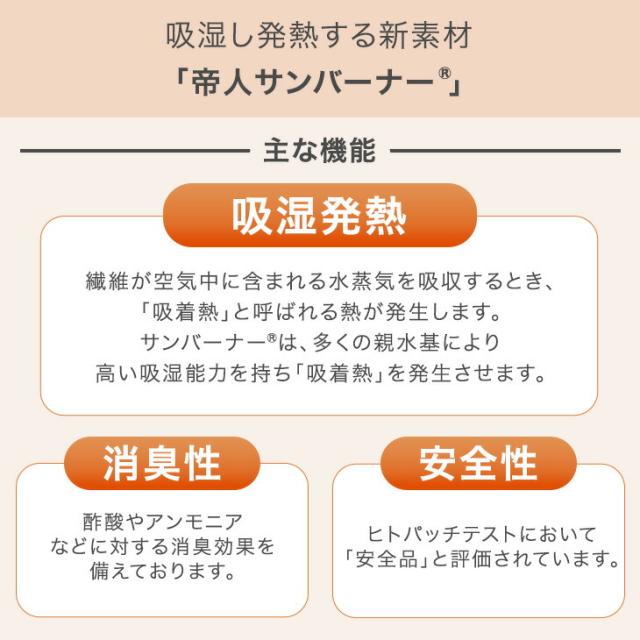 吸湿発熱機能わた(合成繊維)10%、ポリエステルわた90%