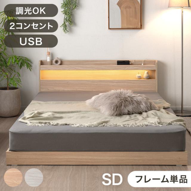 【正午〜P5%還元】 ローベッド ライト付 調光OK USB コンセント付き 宮付き セミダブル ベッドフレーム ベットフレーム ローベット フロアベッド フロアベット すのこベッド すのこ ベッド ベット