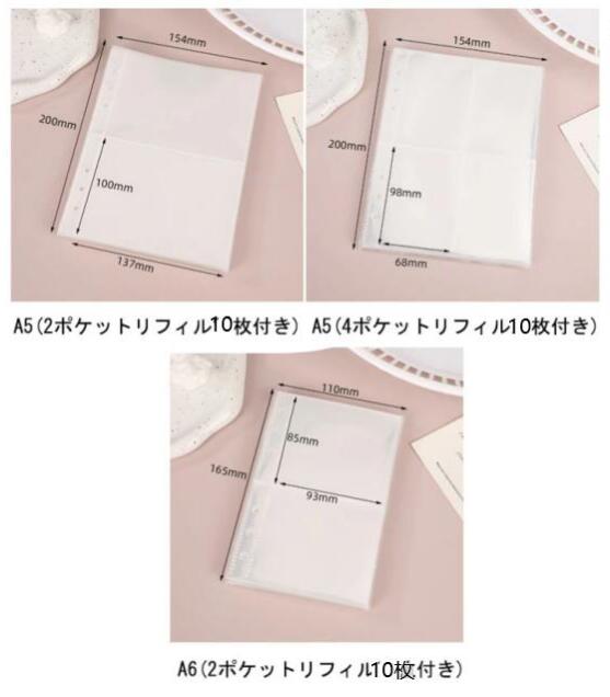 | サイズ | A5(2ポケットリフィル20枚付き) A5(4ポケットリフィル20枚付き) A6(2ポケットリフィル20枚付き) |