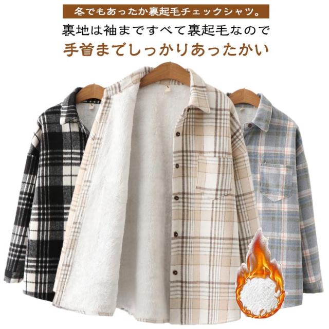 温かい 厚手 シャツ 裏起毛 ネルシャツ 防寒 長袖 トップス チェック柄 ブラウス 防寒 ヒートシャツコート チェック シャツ アウター ネルシャツ カジュアル 女性