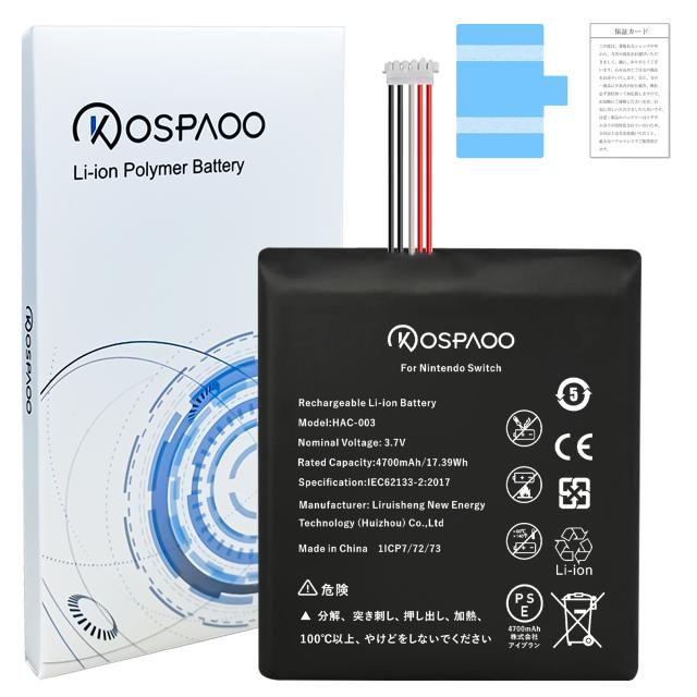 KOSPAOO for Nintendo Switch バッテリー交換 大容量4700mAh 3.7V 増量9% HAC-003電池 PSE認証 対応Nintendo Switch OLED/HAC-001/HEG-001機種 互換修理用 Rechargeable Li-ion Battery 高温・低温耐性 600〜800サイクル寿命 適用Nintendo Switch電池【No Tool】