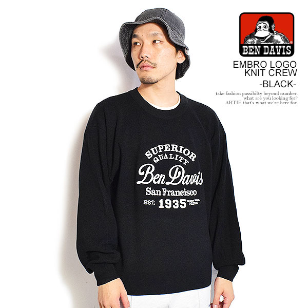 20%OFF SALE セール BEN DAVIS ベンデイビス EMBRO LOGO KNIT CREW -BLACK- メンズ ニット セーター クルーネック atftps