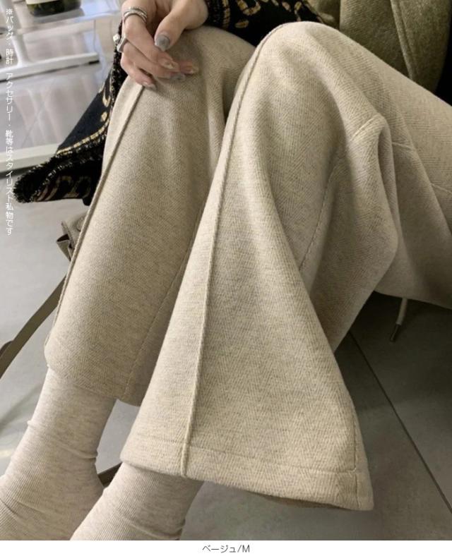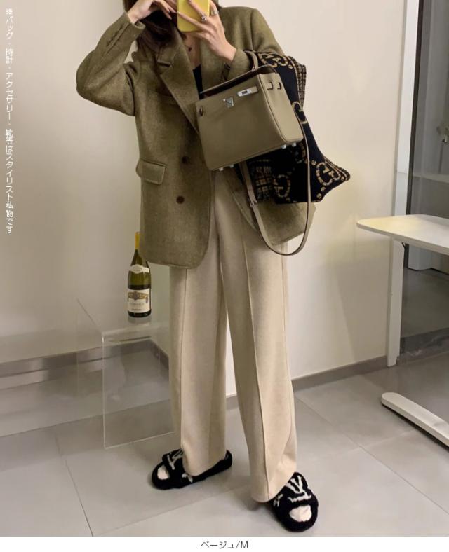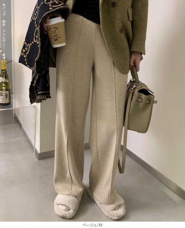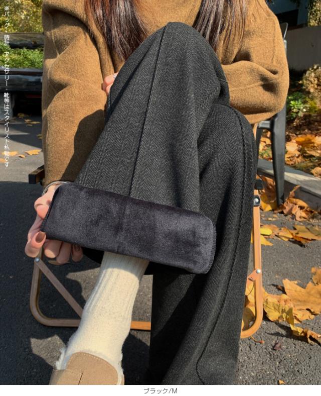 【 裏起毛ピンタックヘリンボーンワイドパンツ 】