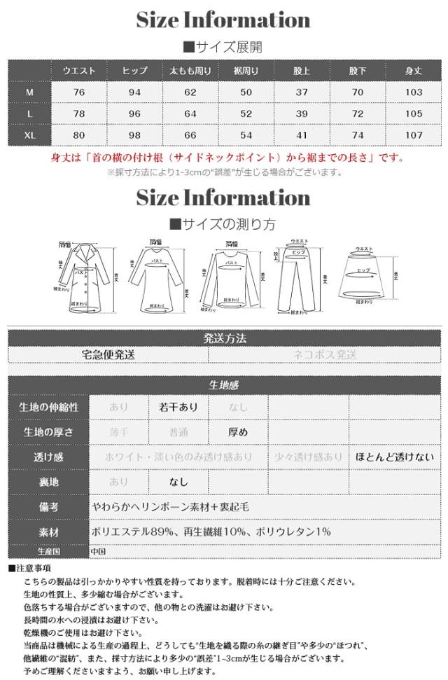 【 裏起毛ピンタックヘリンボーンワイドパンツ 】 上品なヘリンボーン柄で、大人の冬コーデに映えるワイドパンツ。 ふんわり裏起毛仕様であたたかく、寒い季節も快適に過ごせます。 程よくゆとりを持たせたストレートラインが脚をすっきり見せ、 リラックス感ときちんと感を両立。 ウエストは総ゴム仕様で、ストレスフリーな穿き心地。 デイリーにもお出かけにも活躍する万能ボトムです。 《商品ポイント》 ふんわり裏起毛であたたかく快適 脚長効果を高めるセンターシームデザイン ヘリンボーン柄が上品な印象に 総ゴムウエストでラクな穿き心地 体型を拾いにくいストレートワイドシルエット 《デザイン・シルエット》 ・前中心に縦ラインを施したセンターシームデザインが、脚をまっすぐ美しく演出。 ・裾にかけてストンと落ちるIラインシルエットで、下半身をすっきりカバー。 ・厚みのある起毛素材ながらも軽く、もたつかない上品な落ち感。 ・ヘリンボーン織りの表情が、きれいめにもカジュアルにもマッチ。 《コーディネート提案》 オーバーサイズのニットやショートダウンを合わせて、抜け感ある冬スタイルに。 ジャケットやロングコートと合わせれば、通勤やお出かけにも◎。 スウェットやフーディを合わせてカジュアルダウンもおすすめ。 同系色のトップスでまとめると、セットアップ風の上品コーデに。 《サイズ・カラーバリエーション》 サイズ:M / L / XL カラー:ブラック / ベージュ 《素材・機能性》 ・素材:ポリエステル89%、再生繊維10%、ポリウレタン1% ・透け感:なし ・伸縮性:普通 ・裏地:なし |
