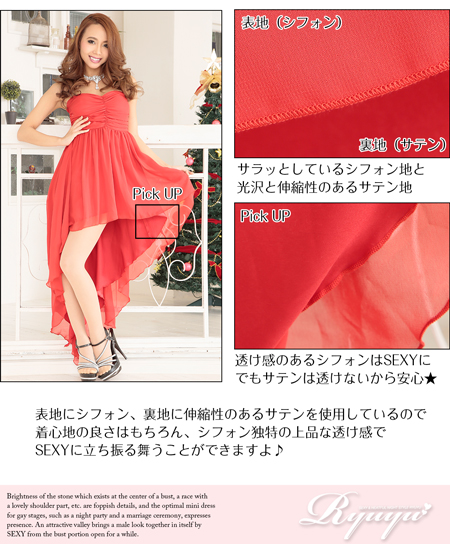 ☆鮮やかな赤(レッド)の生地とシフォン素材が優雅に揺れ、ゴージャスな雰囲気でキャバクラのイベントを華やかに彩ります。