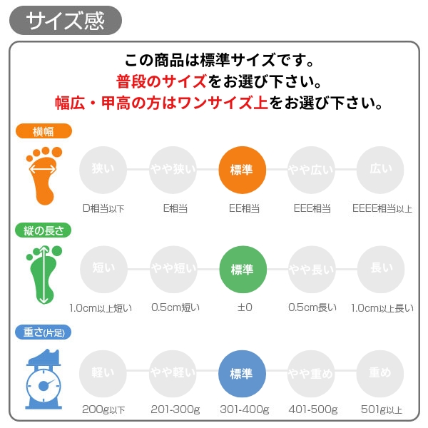 甲高、幅広の方→「0.5cm大きめ」