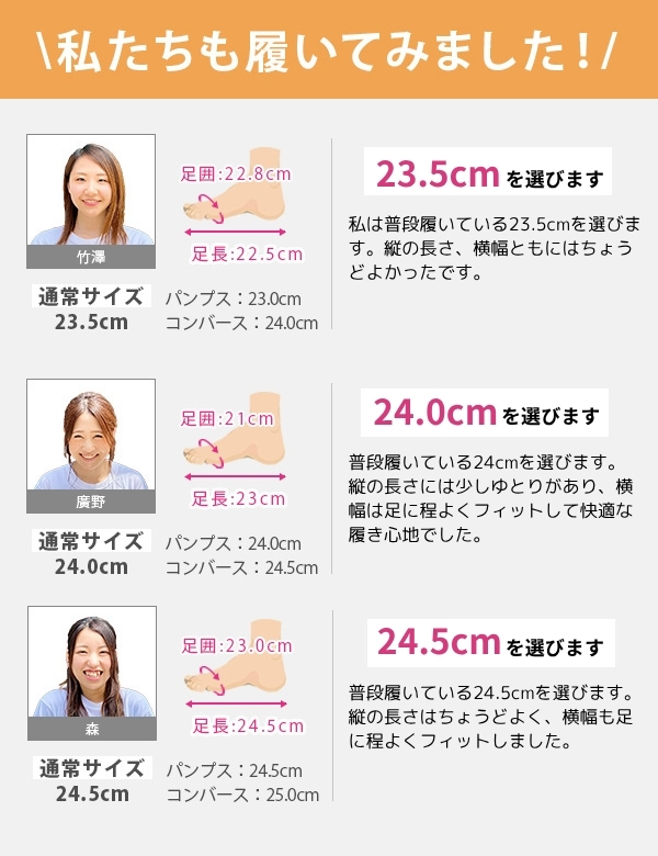 取り扱いサイズ:23cm 23.5cm 24cm 24.5cm 25cm