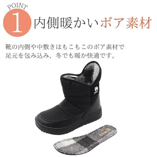 靴の内側はもこもこのボア素材で足元を包み込み、冬でも暖か快適です。