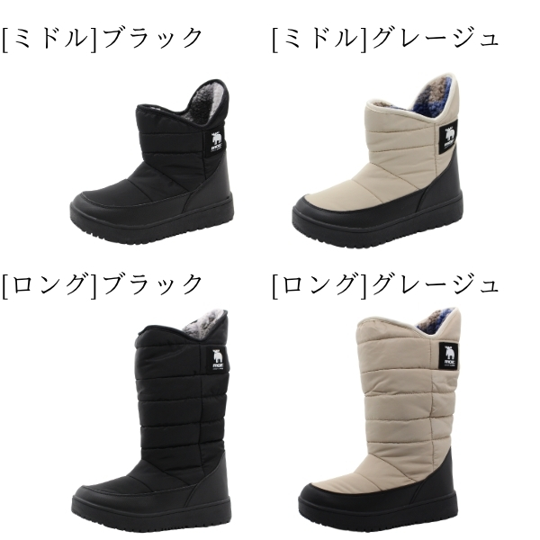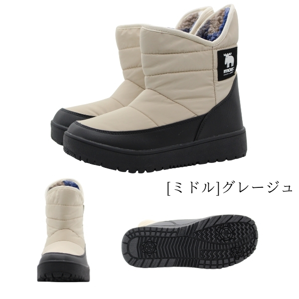 MOZ ブーツ レディース 靴 長靴 スノーブーツ ダウンブーツ ショートブーツ ロングブーツ 黒 ブラック グレージュ あたたかい 雪 雨 滑りにくい 歩きやすい 履きやすい 防寒 もこもこ シンプル ボア モズ MZ-7500 MZ-7501